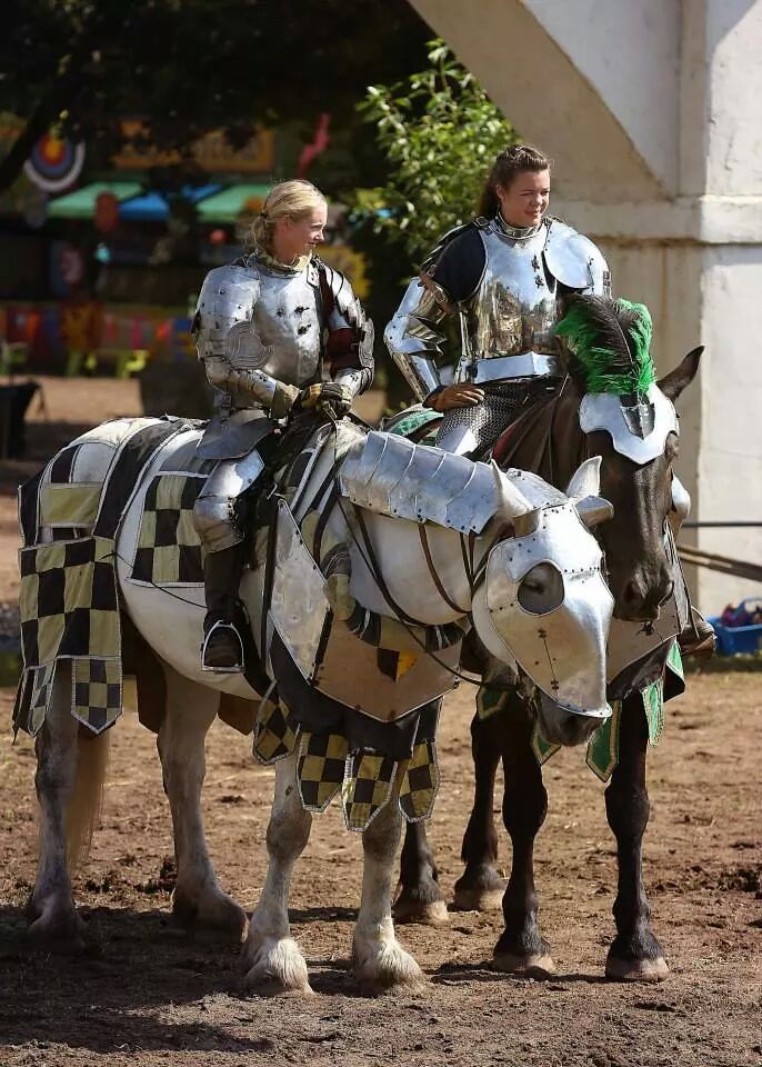 As you know, I spent all last week training in armor with Indy every day, getting used to riding in my helm and gauntlets. I worked on my lance control, worked on the baston course and sword work with Indy, and focused on running against another horse without a counter tilt in the middle. We train our horses to run without a center tilt in the middle, just two end ropes on the side of the lanes, so it’s important to be able to ride against another rider without your horse drifting into the center. The more I work in my armor, the more comfortable I become in it, and as Dave always preaches, I want it to feel like a second skin. It’s definitely a different experience to ride in armor, your vision is very limited, your range of motion is decreased, and you have to feel your horse more than see what you’re doing.